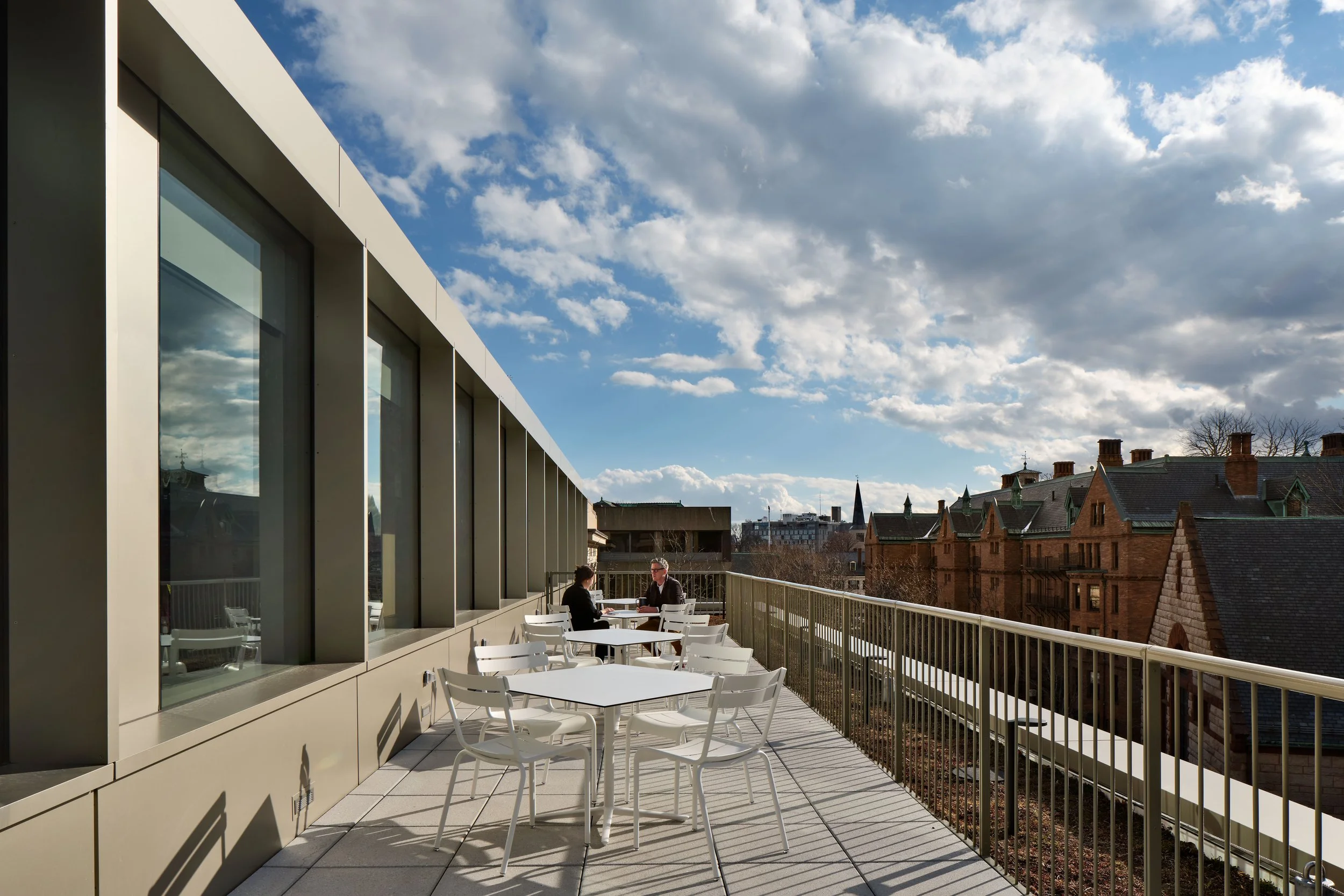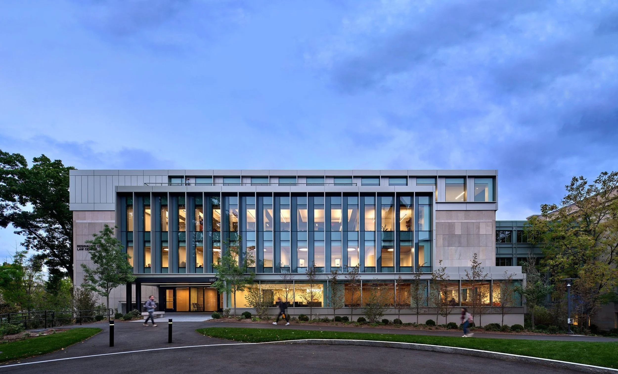 The Reginald F. Lewis Law Center at the Harvard Law School is a 21st century learning and work environment for students, faculty, staff, and law clinic clients. The project transformed a 1959 modernist building, originally designed by Shepley Bulfinch Richardson & Abbott as a library stacks building, with a new entrance, increased teaching and office space, a new circulation system, and high-performance glazing Zinc and glass additions complement the original limestone, metal, and glass building and create a tuned coherence between old and new. A new floor and roof terrace were added to the top of the building, and formerly opaque walls were opened up to bring natural light into the core of the building. The adaptive reuse of the existing building structure and enclosure resulted in a 40% reduction in embodied carbon emissions compared to a new construction building using standard industry materials. Overall, the adaptive reuse of the building saved about one million tons of embodied carbon, which is the equivalent to the annual energy use of 120,000 homes.