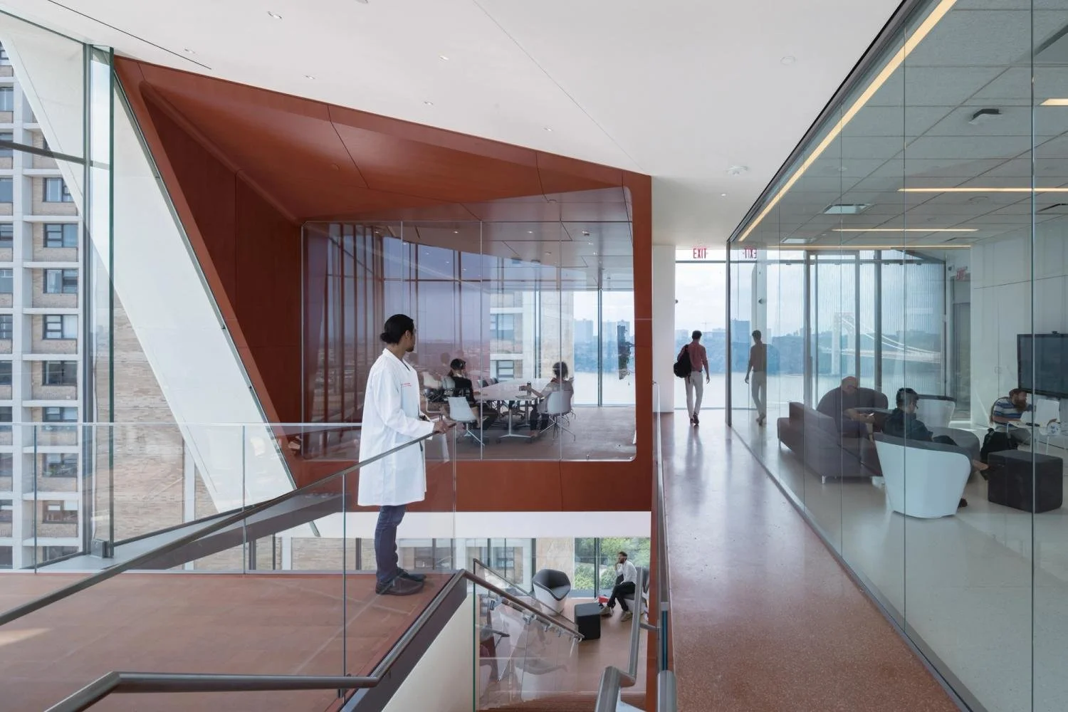 Located on an existing Columbia University property, the new 100,000 square foot Medical and Graduated Education Building will be used by students from all four CUMC schools. The “study cascade” is the principle design strategy of the building - a network of social and study spaces distributed across oversized landings along an intricate 14 story stair. This cascade creates a single interconnected space the height of the building, stretching form the ground floor lobby to the top, conducive to collaborative, team-based learning and teaching. The study cascade interiors are complemented by a distributed network of south-facing outdoor rooms and terraces that are clad in wood. It is also an urban gesture that, with its transparent facade, aims to become a visual landmark at the northern limit of Columbia University’s medical campus.