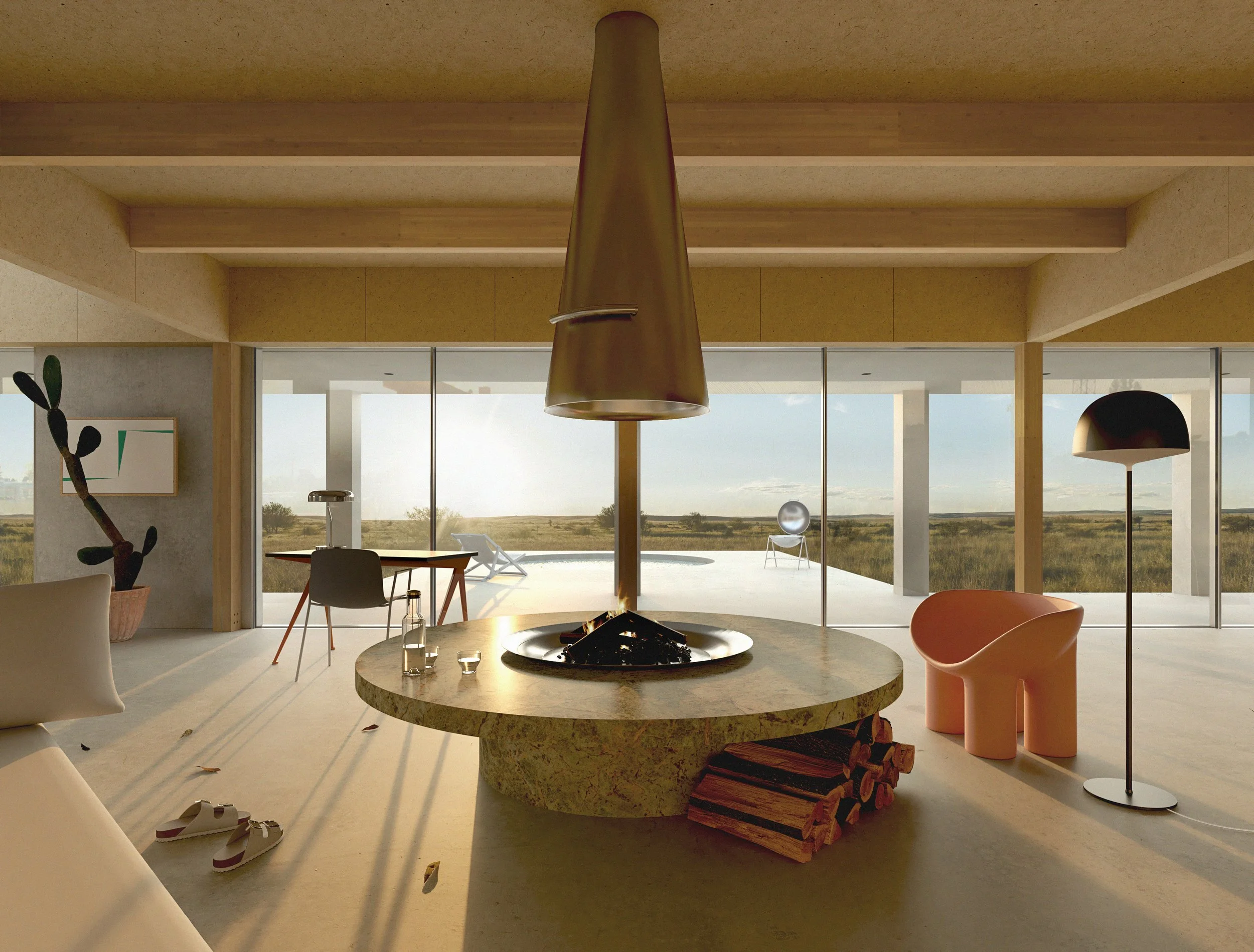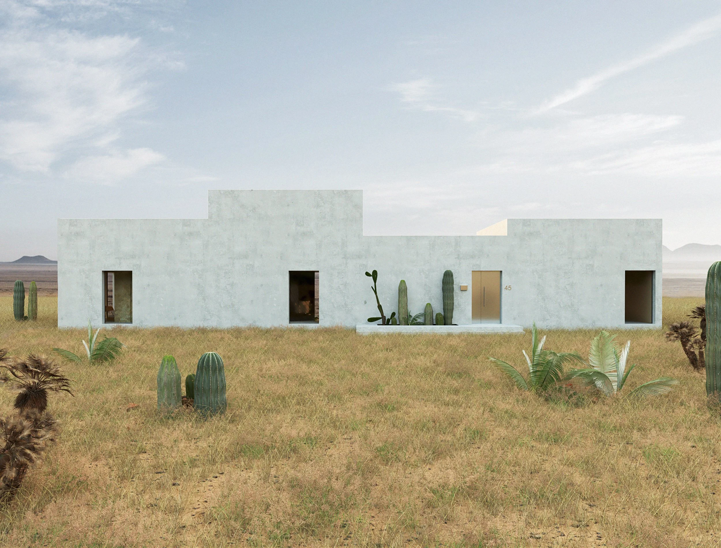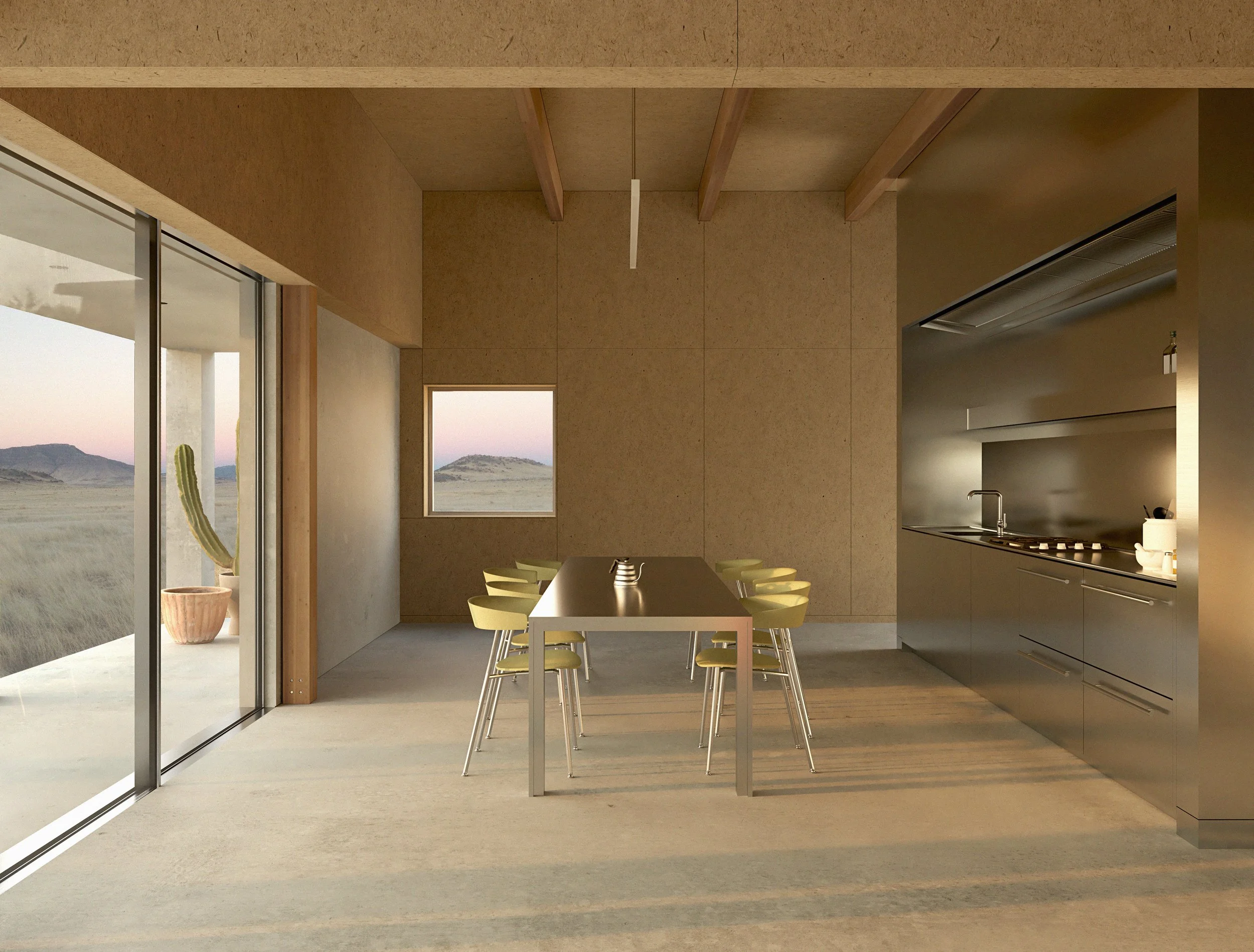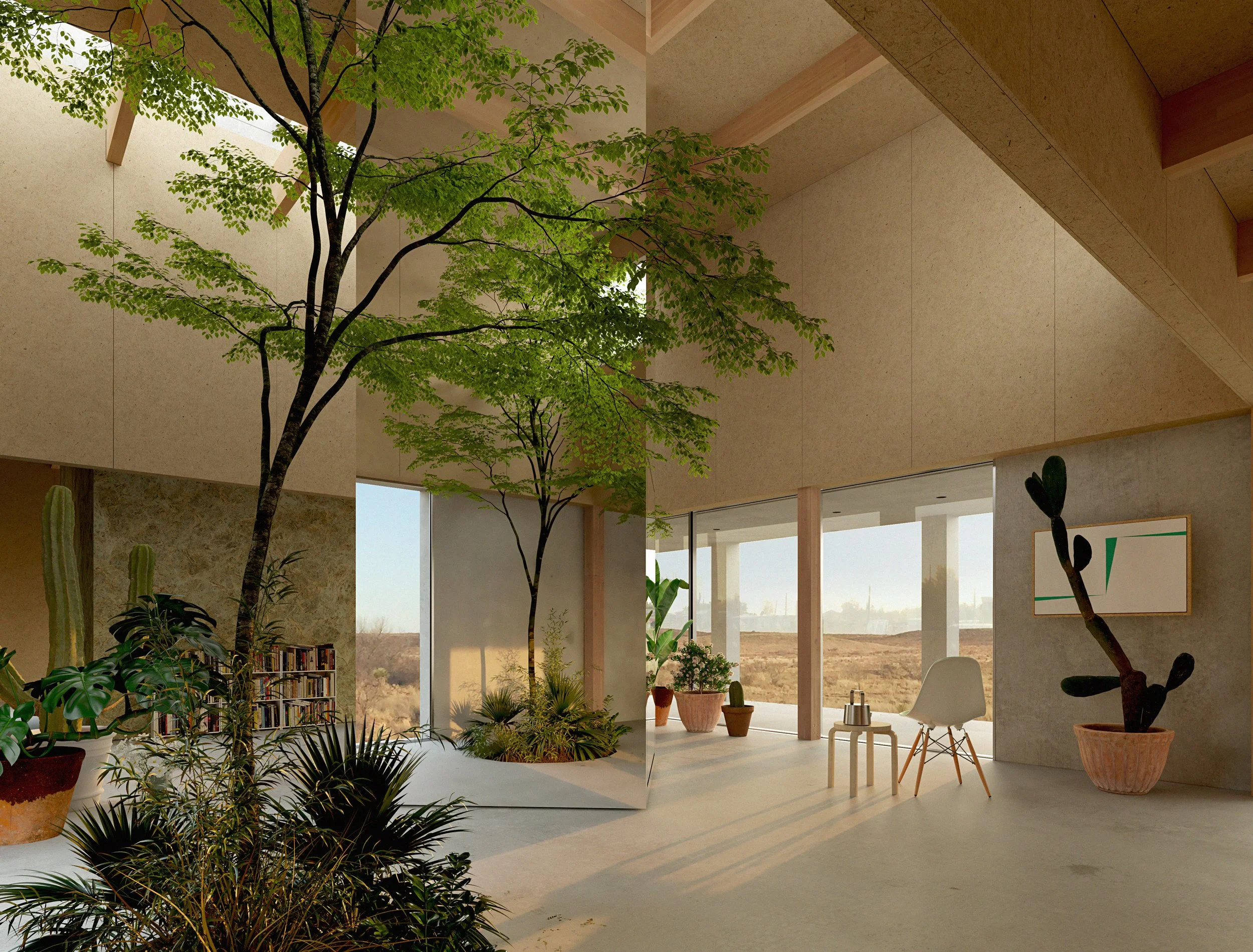 A refined collection of spatial volumes that overlooks the desert landscape.